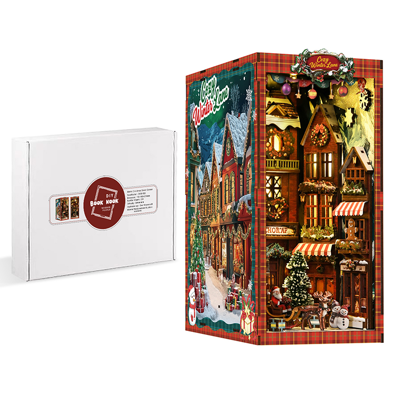 The Cozy Winter Lane DIY Book Nook Kit combines festive design with creative crafting. Every detail—from the glowing windows and snowy rooftops to the decorated Christmas tree—brings the joy of the holiday season into your home. Easy to assemble, it includes step-by-step instructions for a smooth DIY experience. Once finished, it becomes a stunning bookshelf insert or holiday décor centerpiece, spreading Christmas cheer year after year.